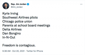 Rep. Jordan is right: Freedom is contagious. As is courage. More and more businesses are waking up to the fact that what the Biden Administration is demanding of them is morally reprehensible.